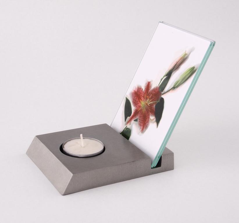 rozmer základne svietnika: 11,5 x 9 x 1,5 cm; rozmer rámika na foto: 13 x 9 cm